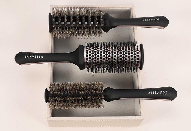 Le choix de la brosse détermine la réussite du brossage. Chez DESSANGE, chaque brosse est pensée pour répondre à un besoin précis tout en respectant la fibre capillaire.